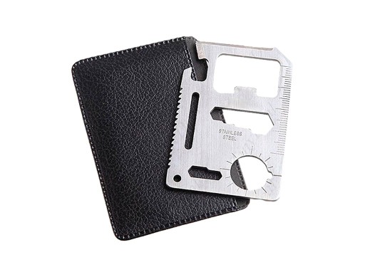 Dzięki niewielkim rozmiarom możemy schować ją nawet w portfelu! Karta posiada aż 11 funkcji i naprawdę przydaje się w awaryjnych sytuacjach. Karta wykonana jest ze stali nierdzewnej 420, jej twardość to 56-58HRC.