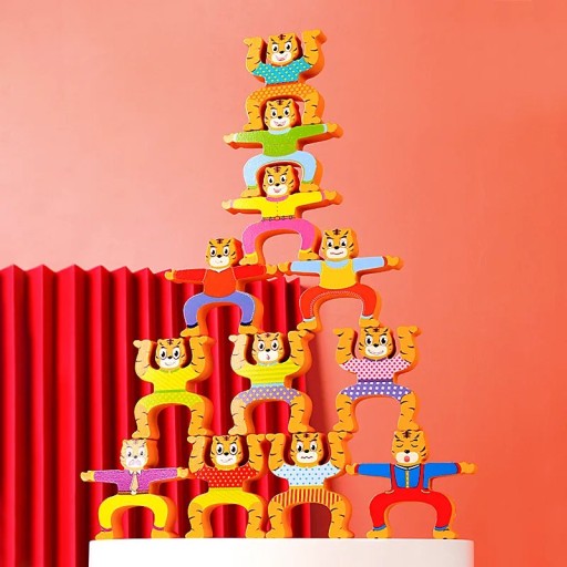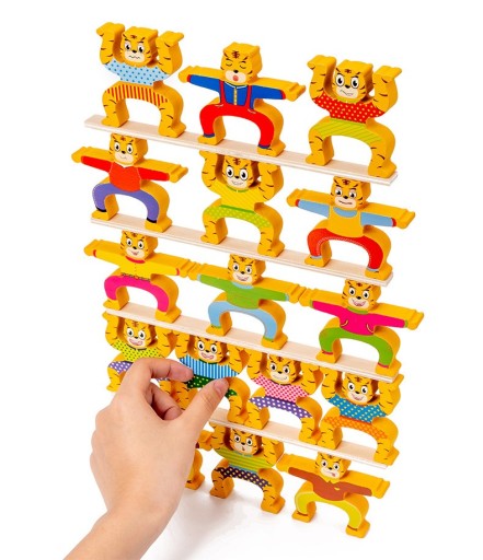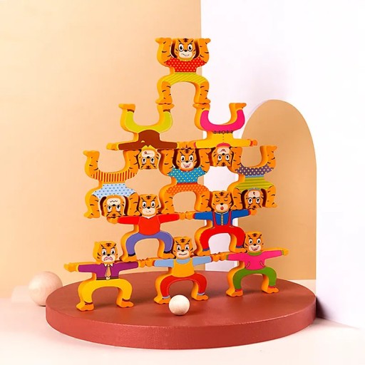 TYGRYSKI DREWNIANA GRA ZRĘCZNOŚCIOWA UKŁADANKA MONTESSORI WIEŻA JENGA