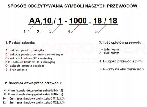 Przewód hydrauliczny jest zakuty, przedmuchany (oczyszczony ciśnieniem ze sprężarki), gotowy do podłączenia i pracy w układzie. W skład gotowego przewodu wchodzi: oryginalny, podwójnie zbrojony i elastyczny wąż marki Hydrolider oraz zakucia polskiego producenta. Wszystkie elementy są odporne na warunki atmosferyczne, pękanie i korozję.