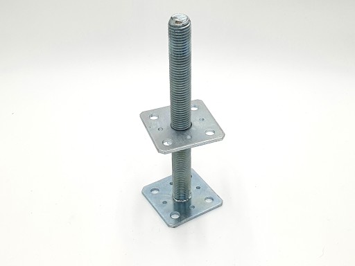 Podstawa słupa regulowana przykręcana ułatwia montaż elementów drewnianych z betonem. Regulacja umożliwia ustalenie wysokości montowanego elementu. Posiada duży zakres regulacji wysokości. Wpuszczona do drewnianego słupa zwiększa jego stabilność.