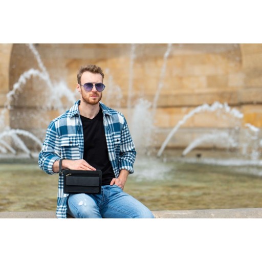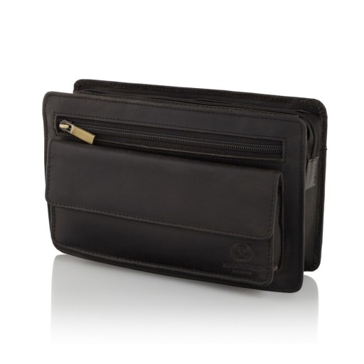 Saszetka męska do ręki Paolo Peruzzi, wykonana ze skóry naturalnej licowej. Możliwość noszenia saszetki w dłoni lub na pasku, wokół nadgarstka. Typowej wielkości saszetka posiada dwie frontowe kieszenie - jedną na suwak, drugą zamykaną klapą na napy z magnesem. Komora główna zapinana na suwak, tylna kieszeń również na zamek błyskawiczny. Poręczny, klasyczny model spełniający wszystkie męskie, codzienne potrzeby.