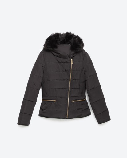 Ciepła kurtka wypełniona kaczym pierzem. Długi rękaw. Kieszenie z przodu. Zapięcie na złoty zamek, wysoki kołnierz z odpinanym futrem.