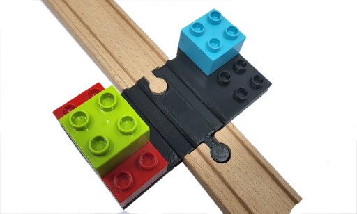 Łączniki pozwalają na łączenie popularnych klocków Lego Duplo z torami kolejowymi.