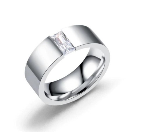 Oferuję obrączkę z kryształem wykonaną ze stali chirurgicznej platerowanej . Nie zawiera niklu i nie uczula ,doskonała dla alergików.