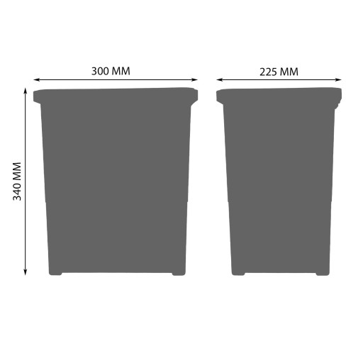 - wymiary koszy: 2 x 18 litrów, s: 30 cm, g: 22.5 cm, w: 34 cm.