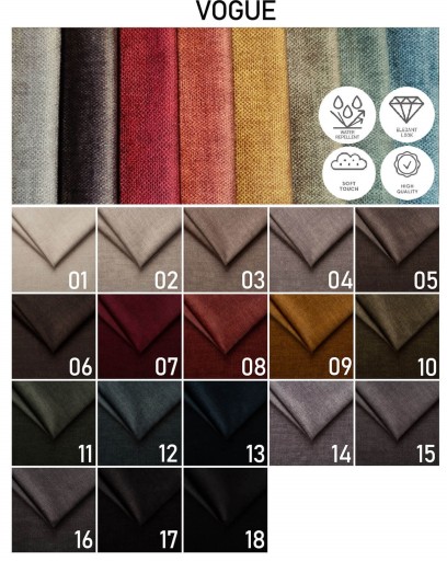 - Tkanina VOGUE (miła w dotyku, welur, nie wchłania wody) DOPŁATA +350 zł