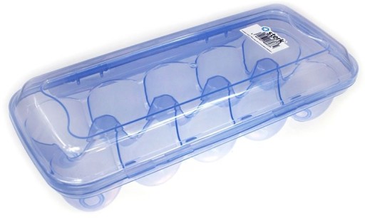 Pojemnik na 10 jajek wykonany z trwałego tworzywa sztucznego idealny do zdrowego i bezpiecznego przechowywania świeżych jajek w lodówce.
