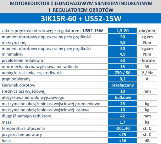 Silnik z regulatorem obrotów 2-20obr/min typ 3IK15R-60 + US52-15W