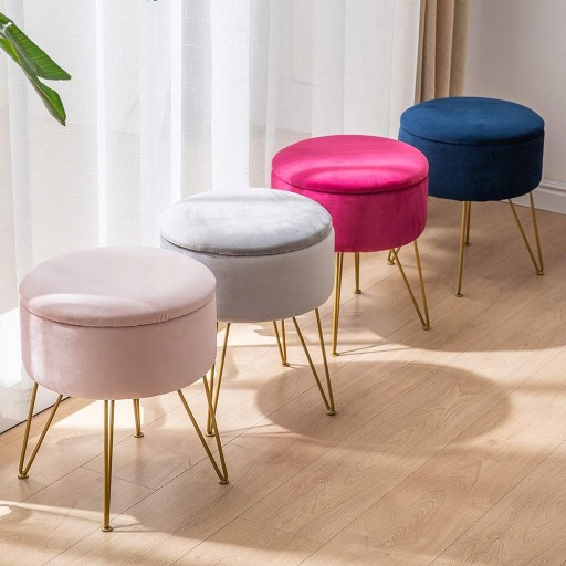 BUYKE Podnóżek aksamit okrągły otomański puf taboret, toaletka, stołek metalowe nogi zdejmowana pokrywa, do domu salonu przymierzalni pokóju sypialni