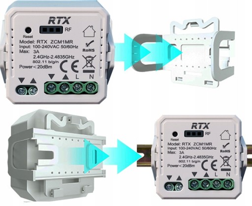 - Można wbudować pod tradycyjne przełącznik lub zamocować na szynie DIN w rozdzielni prądu