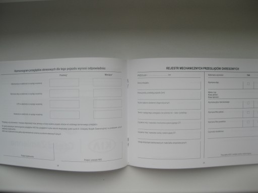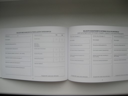 Oryginalna Polska książka serwisowa (przeglądów) do samochodów