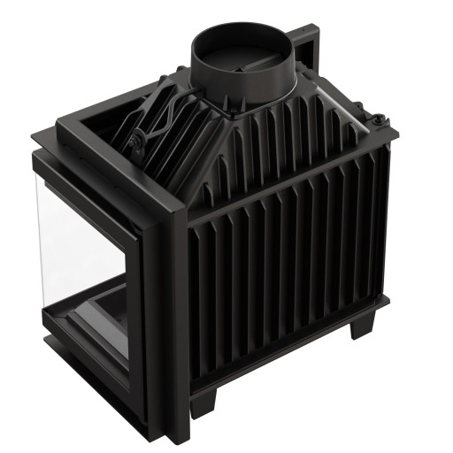 Narożny wkład kominkowy o drzwiach typu BS (szyby łączone). Dzięki takiemu rozwiązaniu możesz podziwiać ogień z dwóch stron w dwóch pomieszczeniach jednocześnie. Idealne rozwiązanie do łączonych pomieszczeń.