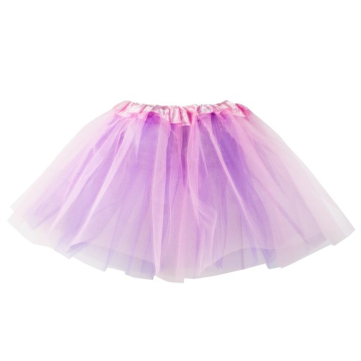 Spódniczka składa się z dwóch warstw kolorowego tiulu - różowego i fioletowego. Rozmiar uniwersalny, odpowiednia dla dziecka od 2 do 7 lat. Klasyczna taneczna tutu bez podszewki. Idealna do legginsów lub rajstopek.