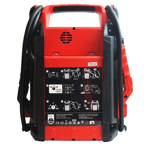 FUNKCJAMI Zmodernizowany booster PB12 / 24 w konstrukcji Banner, z dwoma wysokowydajnymi akumulatorami AGM do samochodów osobowych, ciężarowych i pojazdów użytkowych z systemem 12 V lub 24 V.