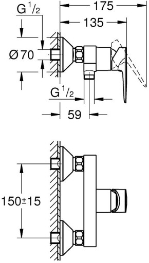 BATERIA PRYSZNICOWA ŚCIENNA CHROM GROHE START EDGE