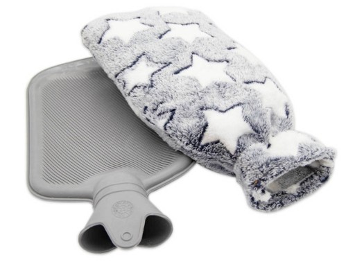 - termofor w szarym, pluszowym futerku w białe gwiazdki.