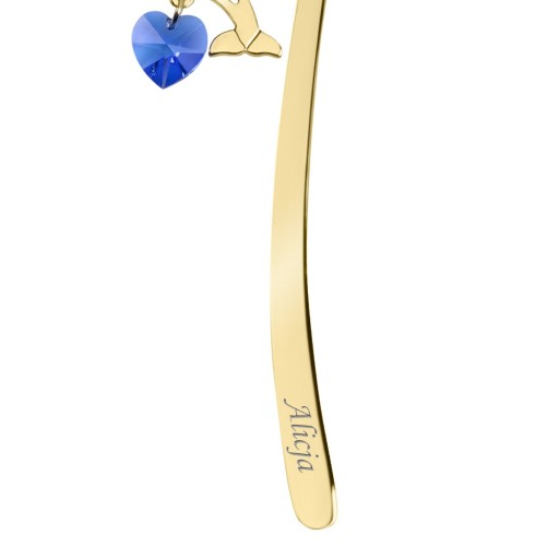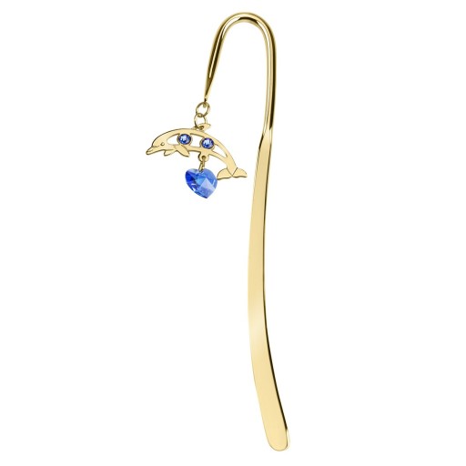 Proponujemy Państwu elegancką pozłacaną zakładkę z zawieszką w kształcie delfina z oryginalnymi kryształami oraz indywidualnym grawerem. Zakładka z wybraną dedykacją będzie towarzyszyć bliskiej osobie przy każdej książkowej przygodzie.