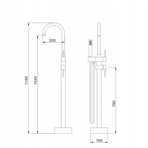 BATERIA WANNOWA WOLNOSTOJĄCA PODŁOGOWA ZŁOTA RUCHOMA JEDNOOTWOROWA MOSIĄDZ
