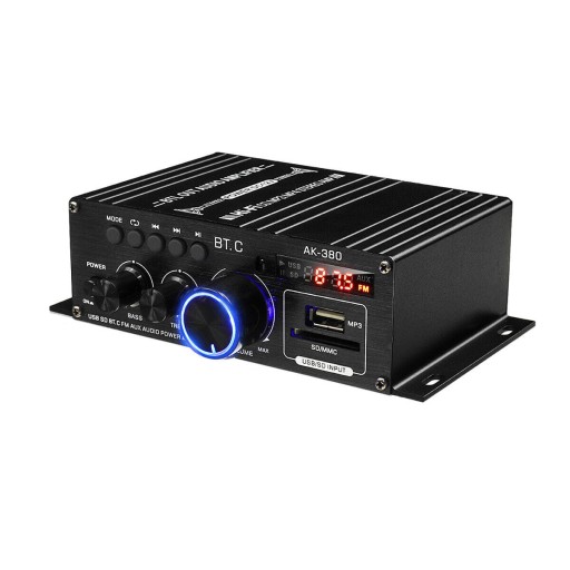 Wzmacniacz stereo Hifi 400 W 400 W ▶ Wzmacniacz mocy audio AK-380, prosty, kompaktowy, praktyczny i mocny, zapewniający moc szczytową 400 W 400 W i moc znamionową 40 W, zaawansowany projekt obwodów, wbudowany rdzeń Bluetooth 5.0 i układ YD7377, bez popu, po podłączeniu przez Bluetooth Brak słyszalnych dźwięków. Ied, przeznaczony dla klientów poszukujących efektów dźwiękowych HiFi.