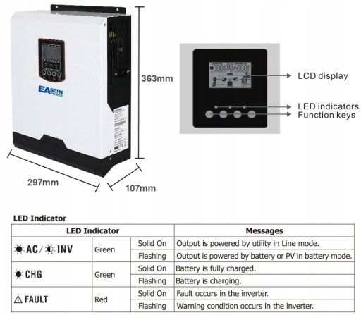 Inwertery solarne EaSUN przeznaczone są do budowy niezależnych systemów zasilania Off-grid 230V opartych o energię pozyskiwaną z paneli PV, sieci energetycznej i akumulatora. Dzięki modułowej konstrukcji i elastycznej konfiguracji inwertery EASUN mogą pracować w trybie UPS z ładowaniem akumulatora z paneli PV i/lub sieci energetycznej.