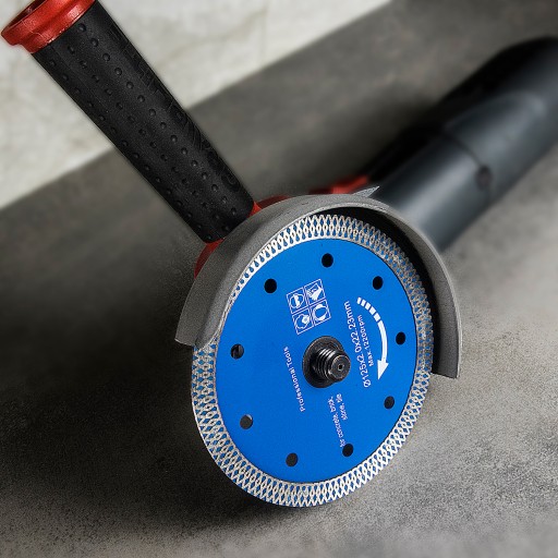 Tarcza diamentowa posiada ryflowany wieniec z obwodem zamkniętym gwarantujący precyzyjną i skuteczną pracę oraz gładkie wykończenie krawędzi (bez odprysków). Zastosowanie wyselekcjonowanego PRO diamentu najwyższej jakości gwarantuje skuteczność cięcia w najtwardszych materiałach.