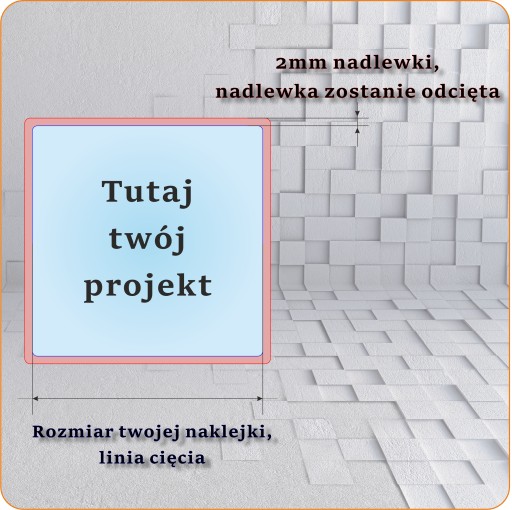 W czerwonej przestrzeni znajduje się część projektu/loga które zostanie odcięte jako nadlewka, dotyczy to projektów które maja kolorowe tło.