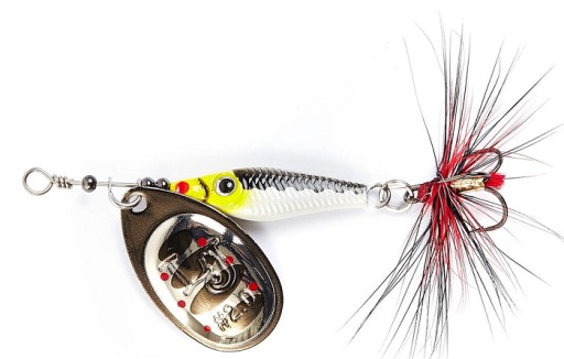 Lucky John Trian Blade Round to rewolucyjne połączenie błystki obrotowej z korpusem w kształcie rybki. Skrzydełko jest malowane z dwóch stron, co zdecydowanie podnosi skuteczność całej przynęty. Paletka wykonana jest z mosiądzu; wiruje wokół korpusu pod kątem 60 stopni. Z kolei sam korpus wykonany jest z ciężkiego stopu metali szlachetnych, co wpływa na jego bardzo dobre właściwości rzutowe. Ciężar właściwy przynęty sprawdza, że da się ona poprowadzić w głębszych partiach wody, wcześniej nie osiągalnych dla innych błystek. Regularny geometryczny kształt korpusu powoduje brak skręcania się żyłki. Trian Blade Round uzbrojone są w wysokiej jakości kotwice. dodatkowo przyozdobione chwostem, który stanowi kolejny element wabiący.