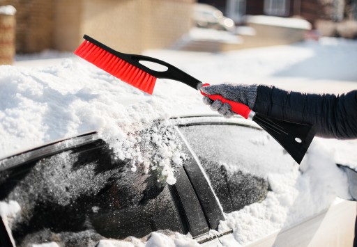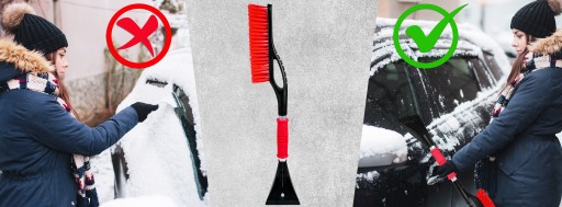 Skrobakiem usuniesz lód z szyb, następnie wyczyścisz samochód ze śniegu czy innych zanieczyszczeń szczotką po drugiej stronie.