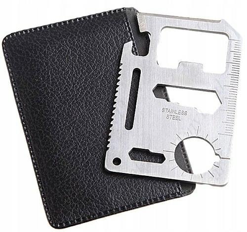KARTA PRZEŻYCIA PRZETRWANIA SURVIVAL CARD NÓŻ NIE DAJ SIĘ ZASKOCZYĆ W TRUDNYCH SYTUACJACH Karta przeżycia to multitool, który dzięki niewielkim rozmiarom możemy schować nawet w portfelu! Karta posiada aż 11 funkcji i naprawdę przydaje się w awaryjnych syt