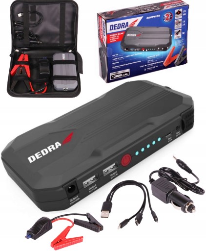 Potężny POWERBANK DEPP1200 z funkcją rozruchu. Pozwala ładować urządzenia mobilne a w razie potrzeby wspomóc uruchomienie samochodu.