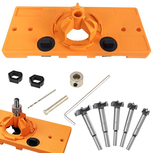 - Szablon do szybkiego wiercenia otworów pod ukryte zawiasy w drzwiach meblowych za pomocą wiertarko-wkrętarki prosty w obsłudze szablon do montażu drzwi i drzwiczek, który gwarantuje precyzyjne nawiercenia pod zawiasy puszkowe. Szablon może być używany ze standardowym wiertłem pod zawiasy.