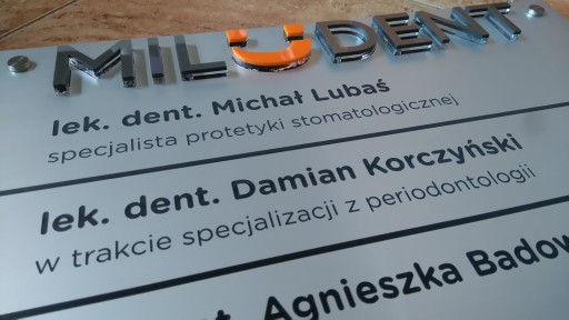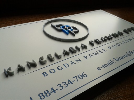 Szyld wykonany z laminatu 1,5 mm przyklejonego na pleksi bezbarwną o grubości 3 mm. Tekst, logo grawerowane laserem. Wycięcie otworów lub podklejenie taśmą dwustronną. Całkowity rozmiar szyldu 30 cm x 50 cm. Przyjmuję pliki w formacie CDR, EPS, AI, PDF, TIFF. Po zakupie proszę przesłać na maila logo, treść i wybrać kolor laminatu. Przed wykonaniem tabliczki wysyłam do akceptacji projekt. Tabliczki z literami wypukłymi z pleksi wyceniane są indywidualnie.