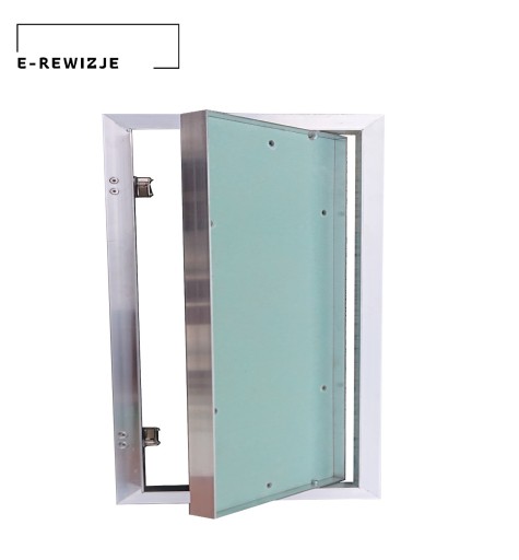 KLAPA REWIZYJNA CERAMIKO wykonana została z profili aluminiowych, które są spawane do ramy zewnętrznej i wewnętrznej. Cały zespół jest połączony za pomocą stałego zawiasu, co umożliwia otwarcie skrzydła drzwiowego w razie potrzeby. Model produkowany jest z wodoodporną płytą w kolorze zielonym, mocowaną do ramy wewnętrznej za pomocą kleju o dużej wytrzymałości, co gwarantuje szybką i łatwą obróbkę powierzchni.