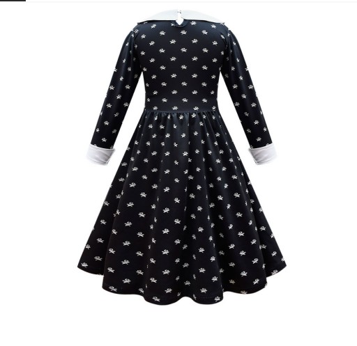 Charakterystyczna sukienka z białym kołnierzykiem i mankietami. . Doskonałe przebranie zarówno na zabawę halloween jak i karnawał .