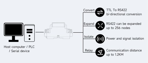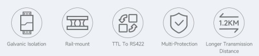 Rail-mount TTL To RS422 Galvanic isolated Converter, Anti-surge, Multiple Isolation Protection