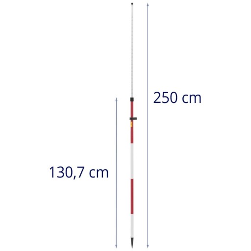 Długość tyczki pod lustro łatwo dostosujesz do potrzebnej wysokości. Ustawisz ją w zakresie od 130,7 do 250 cm, a dzięki blokadzie zaciskowej tyczka będzie stabilna. Dzięki temu Twój pryzmat pozostanie zawsze w optymalnej pozycji. Przydatne będzie przy tym oznaczenie tyczki w metrach.