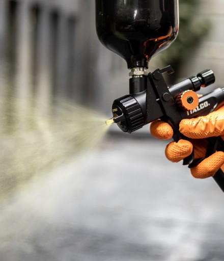 Wykonany w rewelacyjnej technologi HVLP (High Volume Low Pressure) cechującej się pracą na niskim ciśnieniu co znacznie zmniejsza stratę materiału podczas malowania w porównaniu do pistoletów w technologii HP.