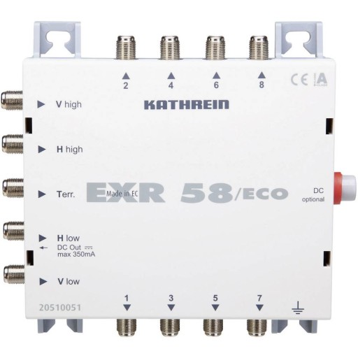 Multiprzełącznik SAT Kathrein EXR 58/ECO Wejścia (multi-switch): 5 (4 sat/ 1 naziemne) Ilość uczestników: 8