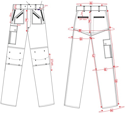 - dwie kieszenie tylne zapinane na zamki