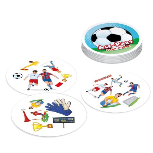 Ale Pary- Piłka nożna szybka, prosta gra karciana w której wygrywa ten kto wykaże się największą spostrzegawczością. W opakowaniu znajdziemy zestaw 31 kart z 6 obrazkami na każdej z nich. Dwie dowolne karty zawsze mają po jednym wspólnym obrazku, ale żeby nie było zbyt łatwo, obrazki te często mają różną wielkość. Gra polega na jak najszybszym znalezieniu wspólnego obrazka. W zależności od wariantu wygrywa ten, kto zdobędzie najwięcej kart, bądź jak najszybciej pozbędzie się wszystkich.Zawartość opakowaniakarty koła - 31 szt., instrukcja