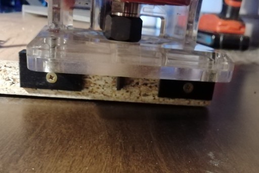 W celu unieruchomienia szablonu na płycie na czas frezowania można od dołu przykręcić go na dwa niewielkie wkręty do drewna.