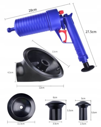 Urządzenie do udrażniania rur działa na zasadzie sprężonego powietrza. Posiada dużą moc i zasięg penetracji. Skutecznie usuwa zatory w kanalizacji wodno-ściekowej. Nie wymaga użycia środków chemicznych. Przyjazne środowisku. Wykonane z tworzywa. W opakowaniu dostępne końcówki o czterech średnicach