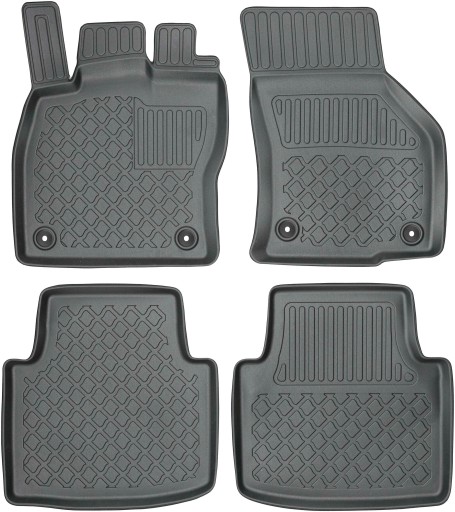Oferowane dywaniki zostały precyzyjnie zaprojektowane do kształtu płyty podłogowej biorąc pod uwagę nie tylko markę / model samochodu, ale także rocznik oraz wersję nadwozia, dzięki czemu pasują idealnie. Dywaniki wytwarzane są z najwyższej jakości, trwałego i wzmocnionego tworzywa sztucznego, niezawierającego substancji szkodliwych dla zdrowia, co zapewnia bezpieczeństwo użytkowania. Wysoki kołnierz (brzeg) ochronny dookoła dywaników oraz stabilność kształtu skutecznie zatrzymuje wodę i brud, zabezpieczając oryginalną tapicerkę samochodową przed zabrudzeniem. Bezpieczne w użytkowaniu, dzięki praktycznemu i łatwemu w użyciu systemowi mocowania do podłogi samochodu. System mocowania dostosowany jest do marki / modelu samochodu i zabezpiecza dywanik przed przesuwaniem podczas jazdy. Matowe wykończenie oraz dopracowany wzór na powierzchni zapewniają estetyczny wygląd dywaników w samochodzie.