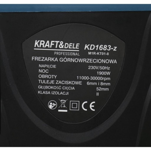 Frezarka górnowrzecionowa KD1683 marki Kraft&Dele. Urządzenie napędzane przez wydajny silnik elektryczny o mocy maksymalnej 1900W osiągający nawet 30.000 obrotów na sekundę!