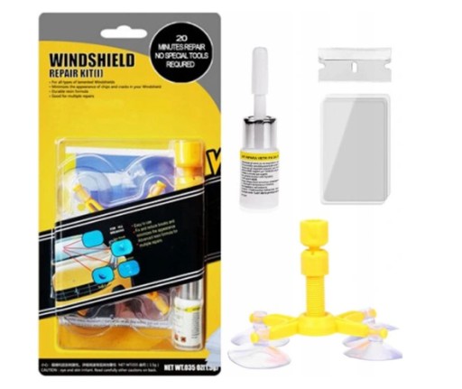 Zestaw do naprawy uszkodzeń i pęknięć szyb samochodowych. Pozbądź się brzydkich pajączków i rozpęków z szyby i zabezpiecz odpryski przed dalszym poszerzaniem.
