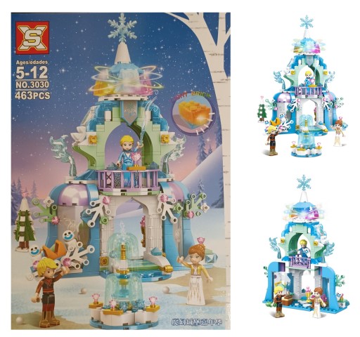SUPER KLOCKI KRAINA LODU Z KTÓRYCH TWORZYMY LODOWY ZAMEK Z FIGURKAMI I FONTANNĄ