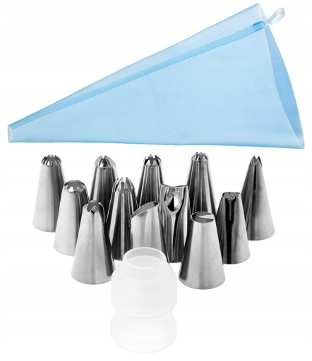 Praktyczny rękaw silikonowy wielokrotnego użytku do ozdabiania słodkości. W zestawie z 12 stalowymi tylkami oraz adapterem.