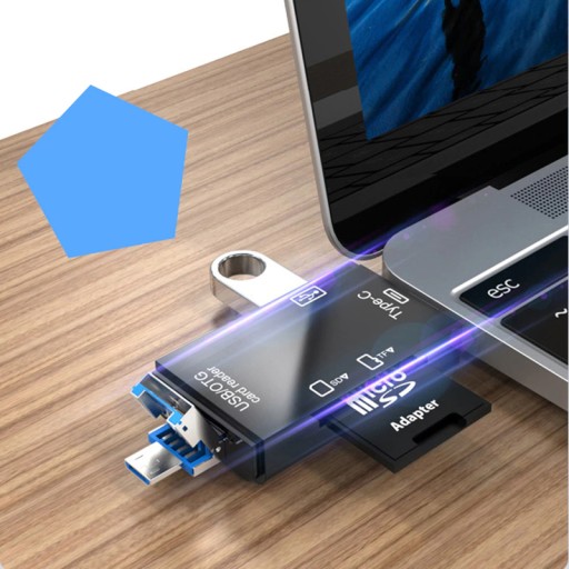Wielofunkcyjny i wielozadaniowy czytnik posiada aż 3 złącza USB w tym: USB, USB-C, Micro USB. Oprócz tego posiada on również wejście na kartę SD i Micro SD. Tak duża ilość wejść sprawia, że to niewielkie urządzenie 5w1 umożliwi bezproblemowe przenoszenie danych między urządzeniami.