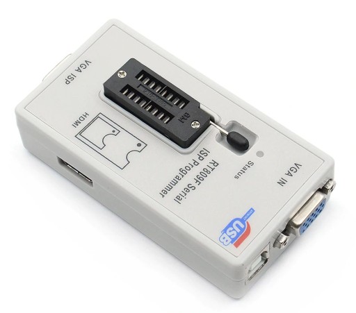 - Czyta i zapisuje 8 i 16-pin'owe układy spotykane w płytach głównych, laptopach, monitorach i telewizorach LCD, routerach oraz sprzęcie domowym