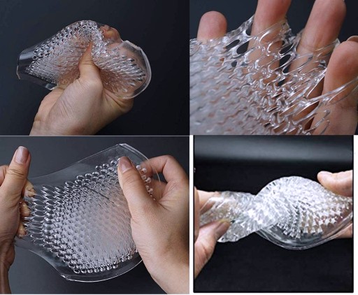 Wkładki nie są przyklejane na klej. Ich właściwości przytwierdzające wynikają z lepkości samego silikonu. Dzięki temu, nie przesuwają się, nie wyślizgują i nie wypadają